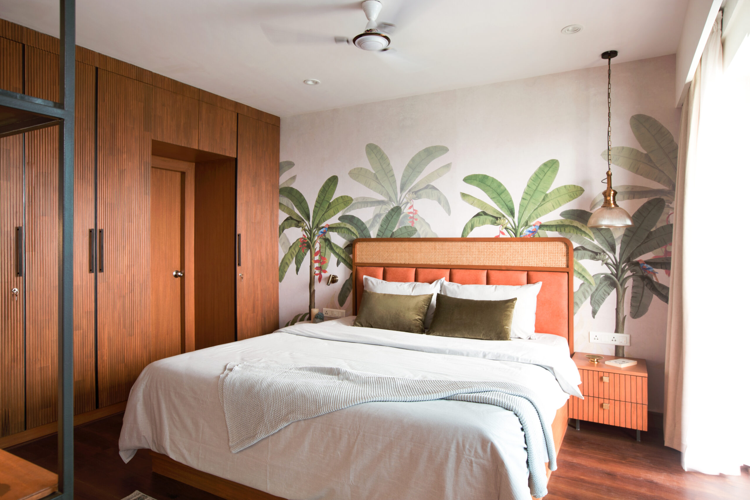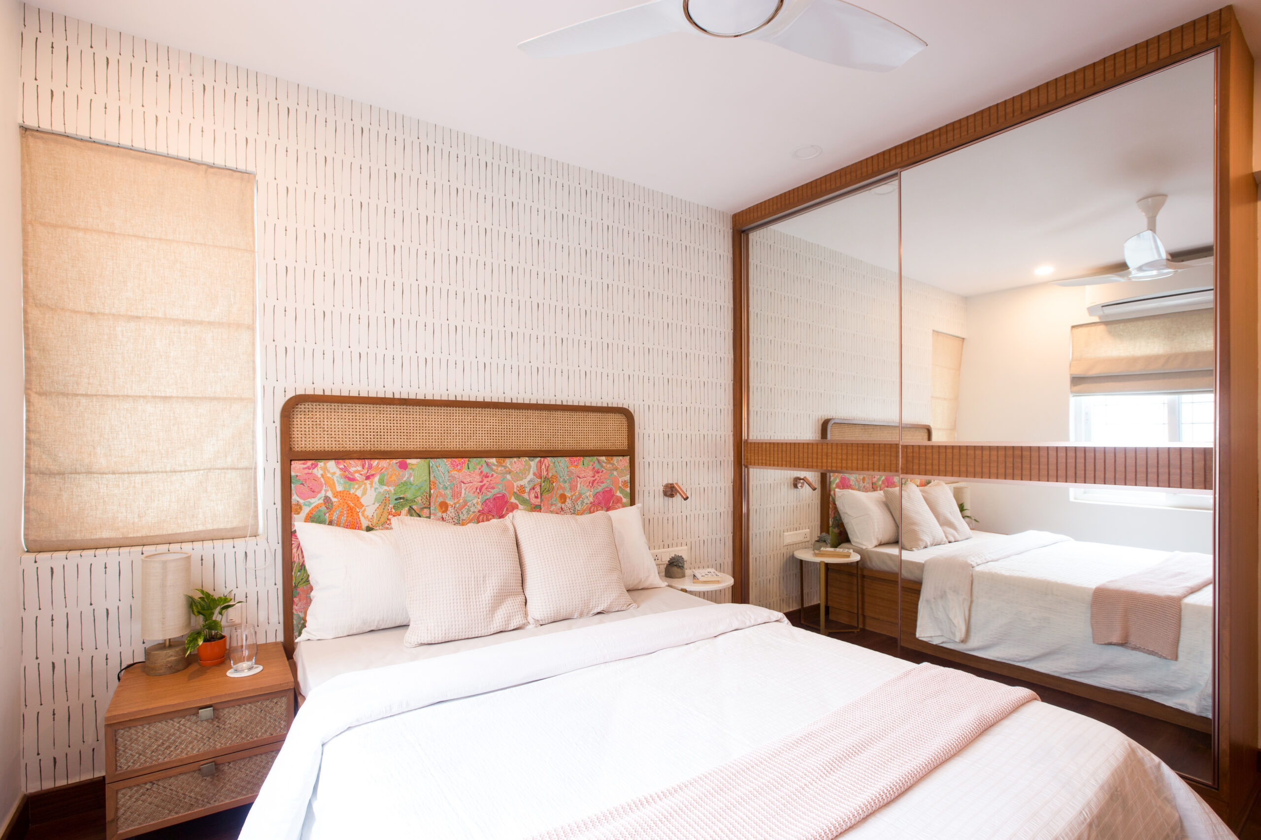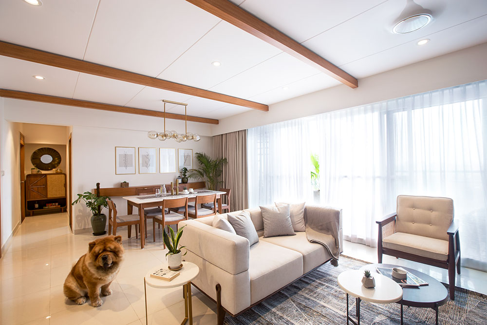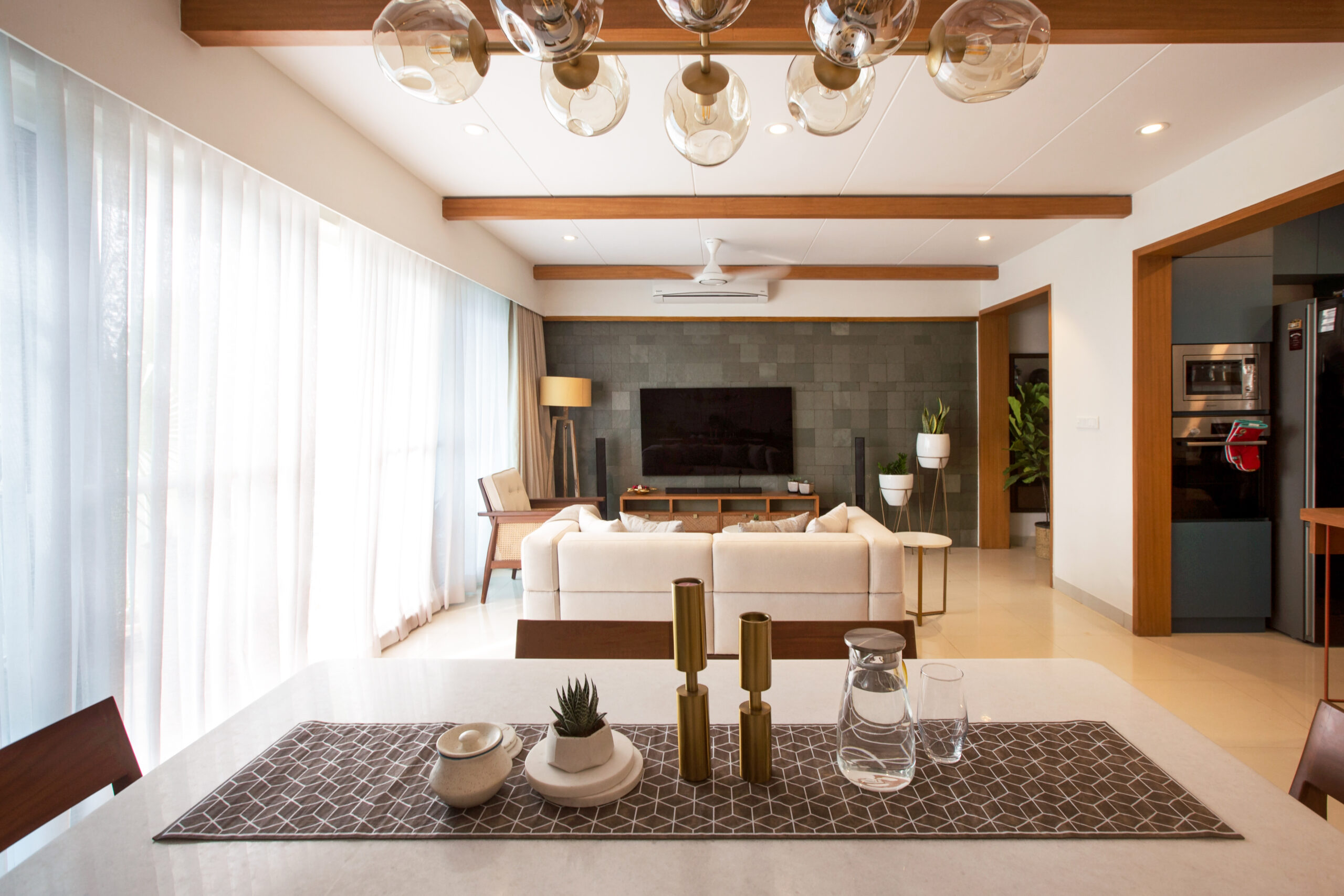 Located near Hosa Lake in Sarjapur, South Bangalore, this 1400 sqft apartment, the project conceptualises the theme of the abode as tropical modern design with natural materials and greenery in the form of planters, the home reflects a perfect composure that describes a flawless contemporary-luxury themed abode.