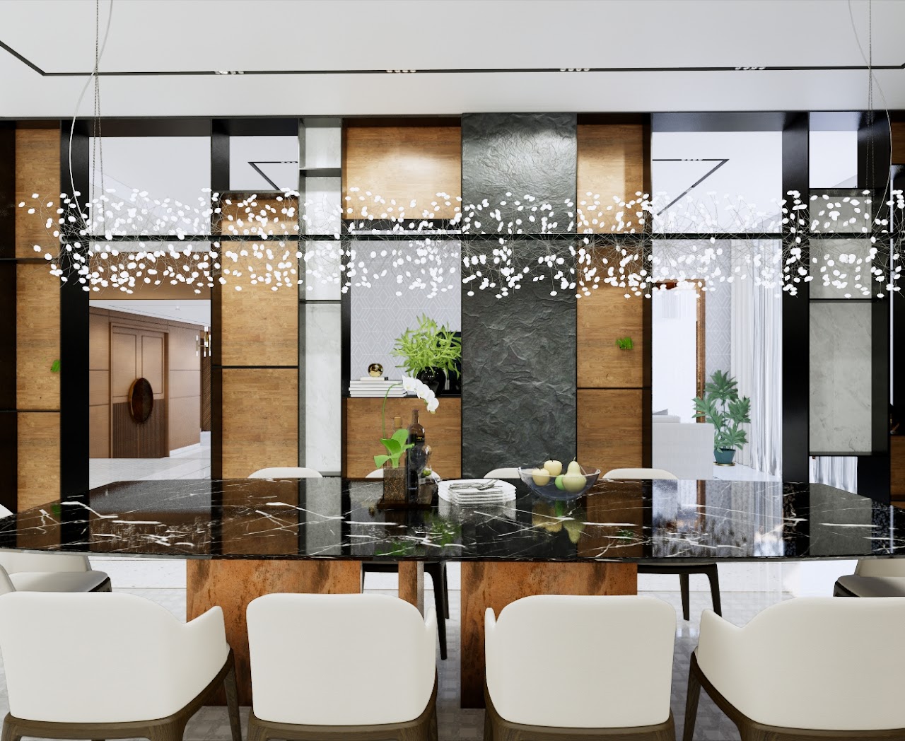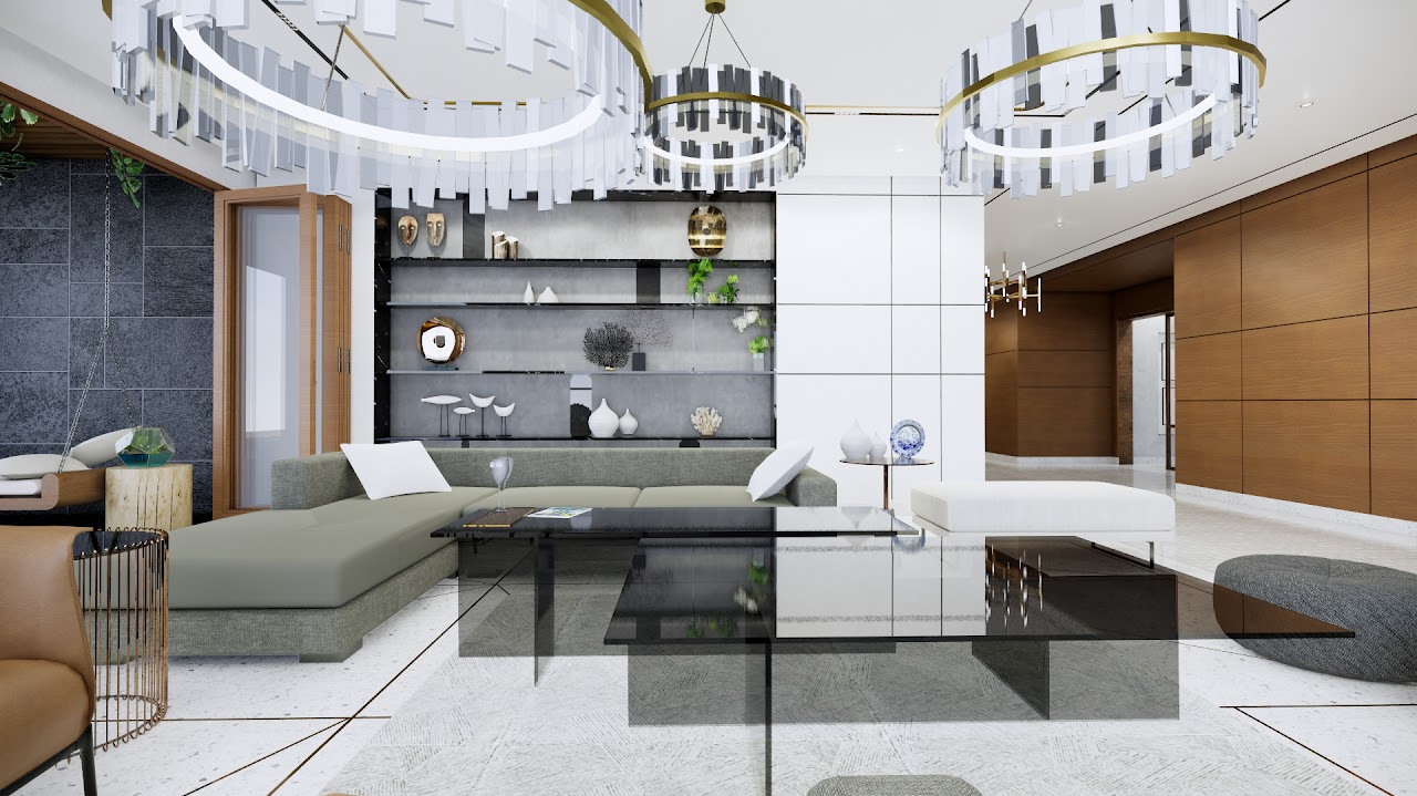 Interior design for a large 6000 sft single floor home in a multi-family dwelling. The 4 bedroom home was designed to be a luxurious abode with large congregational spaces and intimate family rooms. The direction is modern but the design seeks to be a little away from stark minimalism here.