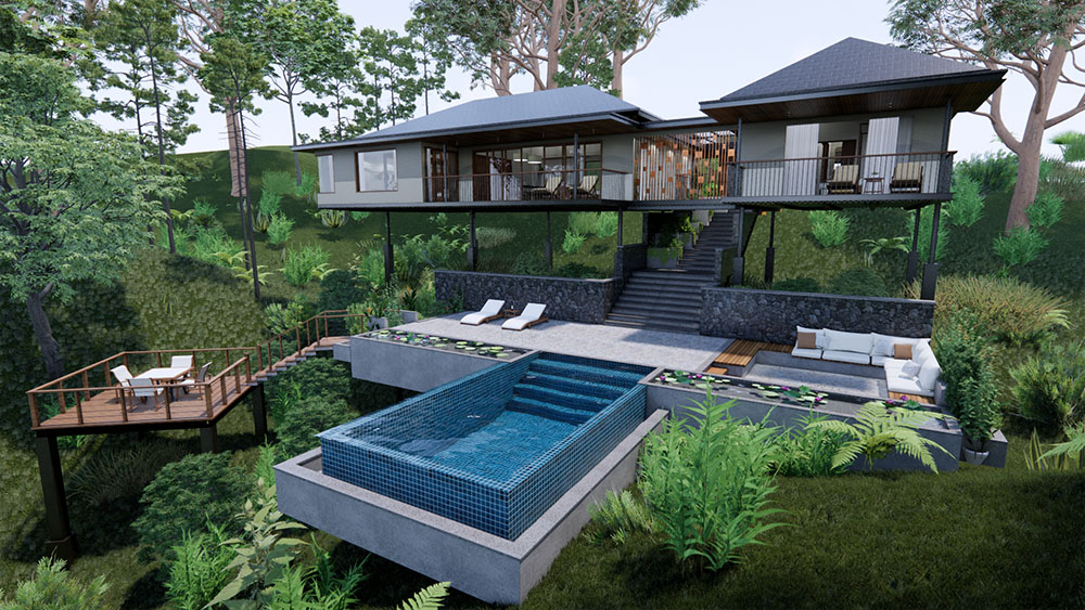 Coorg Forest Villas, an extension project within Ayatana Coorg resort, spans 100 acres amidst Coorg's mountainous terrain. Featuring three cottage types - standard, suite, and presidential - the design seamlessly integrates with the natural landscape. Employing contoured landscapes, including waterfalls and pools, the architecture skillfully follows the land's contours, maximizing spatial utilization. This approach creates a harmonious blend of built environment and natural beauty, offering guests a tranquil and immersive retreat experience.