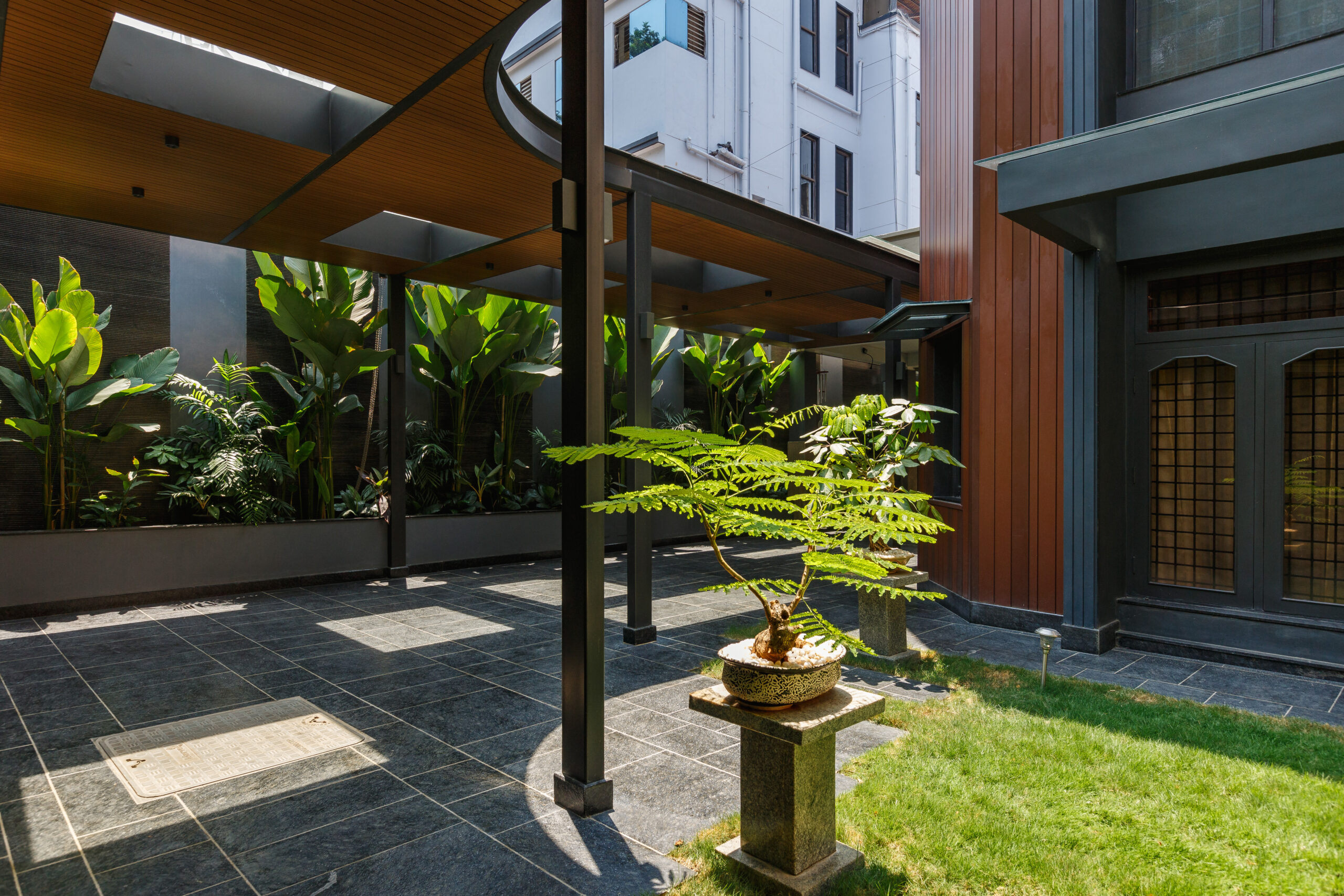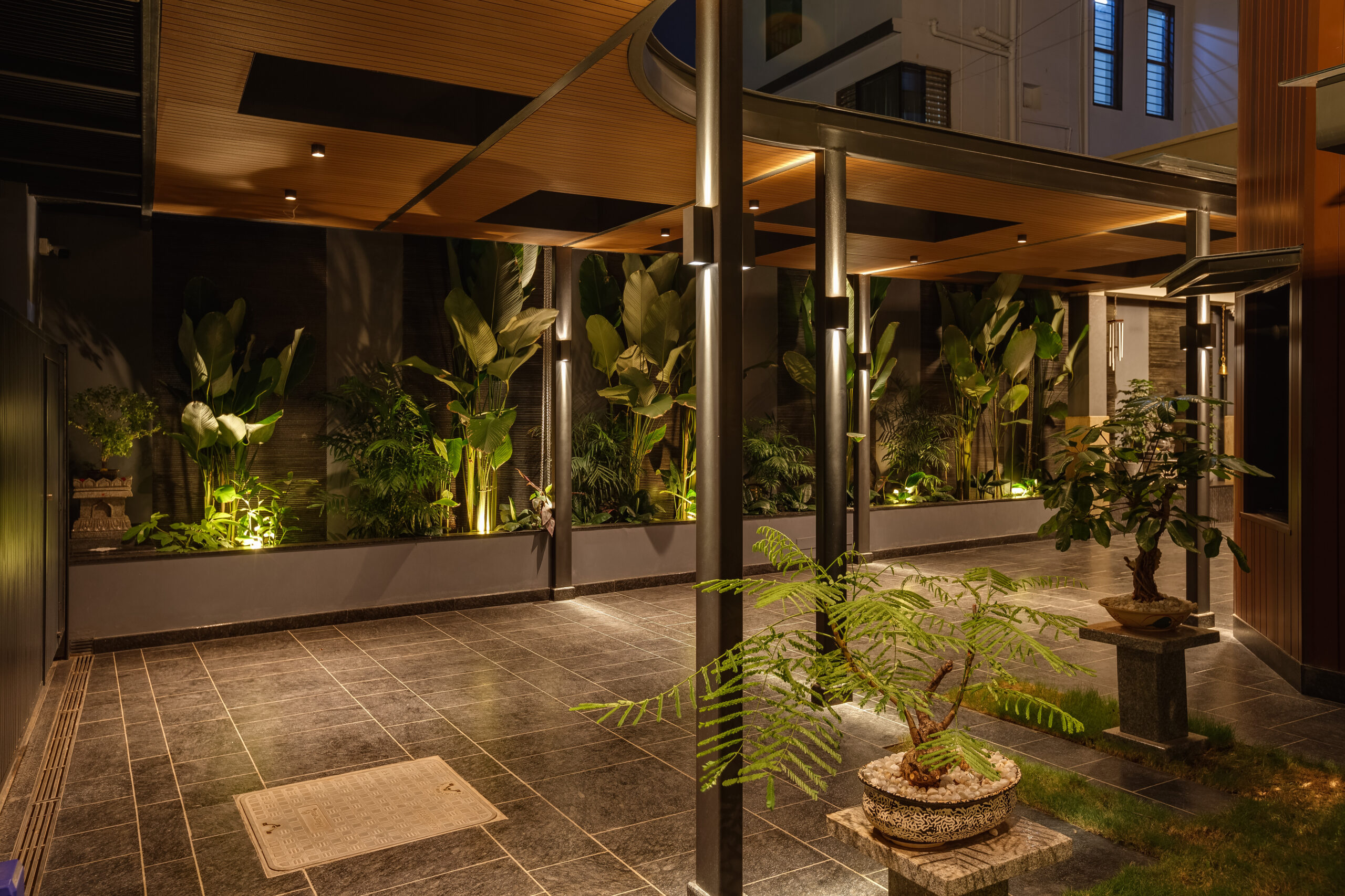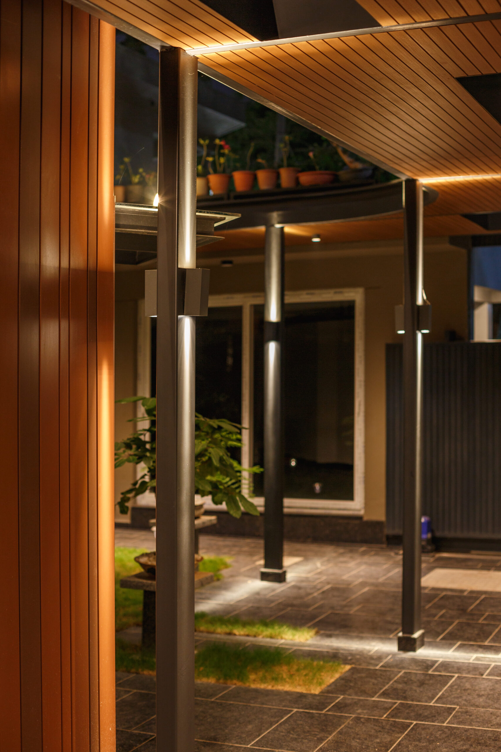 CR Residence in Domlur boasts a striking entrance pergola with relwood cladding supported by steel frames, exuding aesthetic appeal. The facade, adorned with red aluminum panels, delivers a bold statement. Seamless integration of interior and exterior spaces allows for smooth flow, accentuated by abundant greenery. Expansive glass windows enhance spatial... Read More