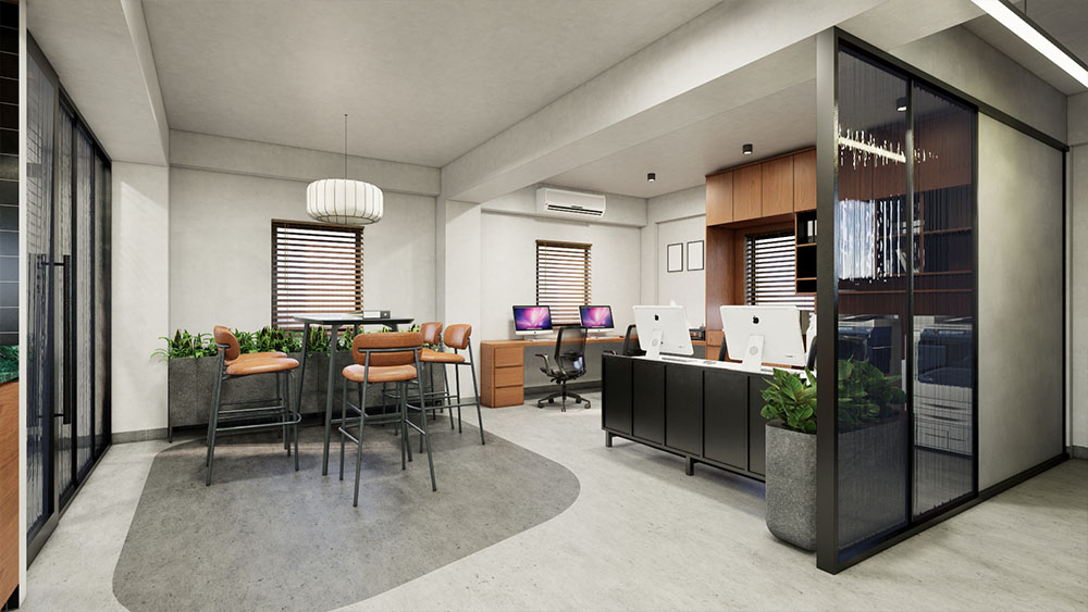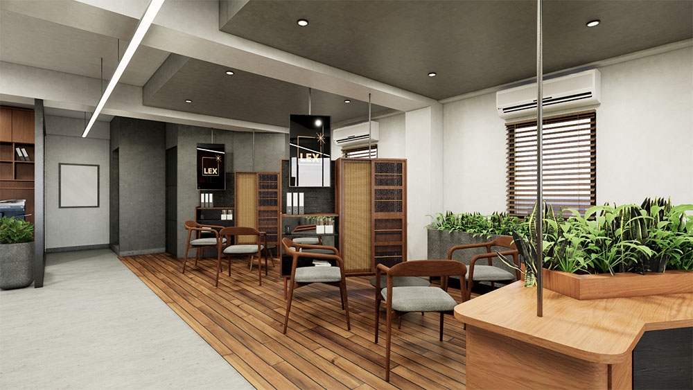 Lex, a 1200sqft real estate office building located in Hyderabad, stands as a testament to modern sophistication, seamlessly blending sleek design with functionality. Its exterior showcases a harmonious mix of steel, concrete, and glass, while inside, an open-concept layout fosters collaboration and adaptability.  Flexible workspaces, private offices, and amenities cater... Read More